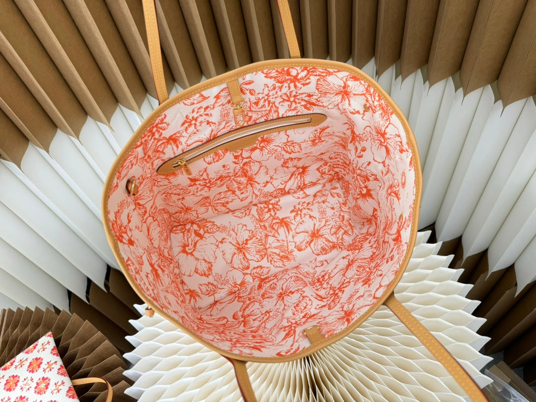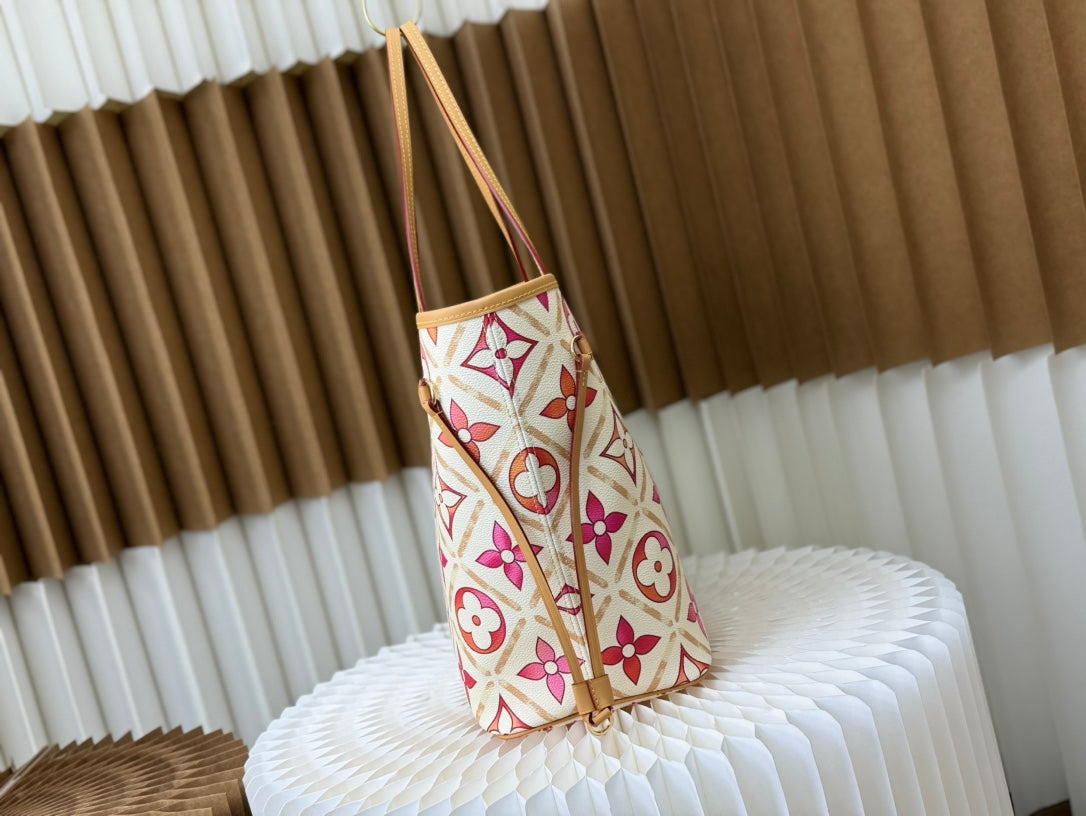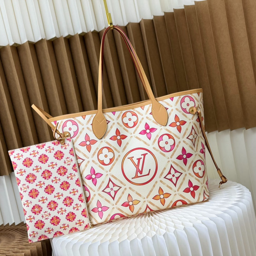 2024 SS Watercolor Tote Medium Bag | Monogram-Inspired Canvas | Detachable Pouch | Spacious Work & Travel
