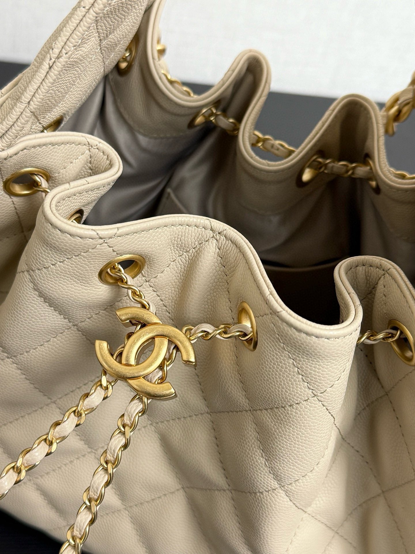 25C HOBO Adjustable Chain Bucket Bag - Genuine Leather Multi-functional Crossbody Travel Bag with Dual Side Pockets (30*26*14cm)