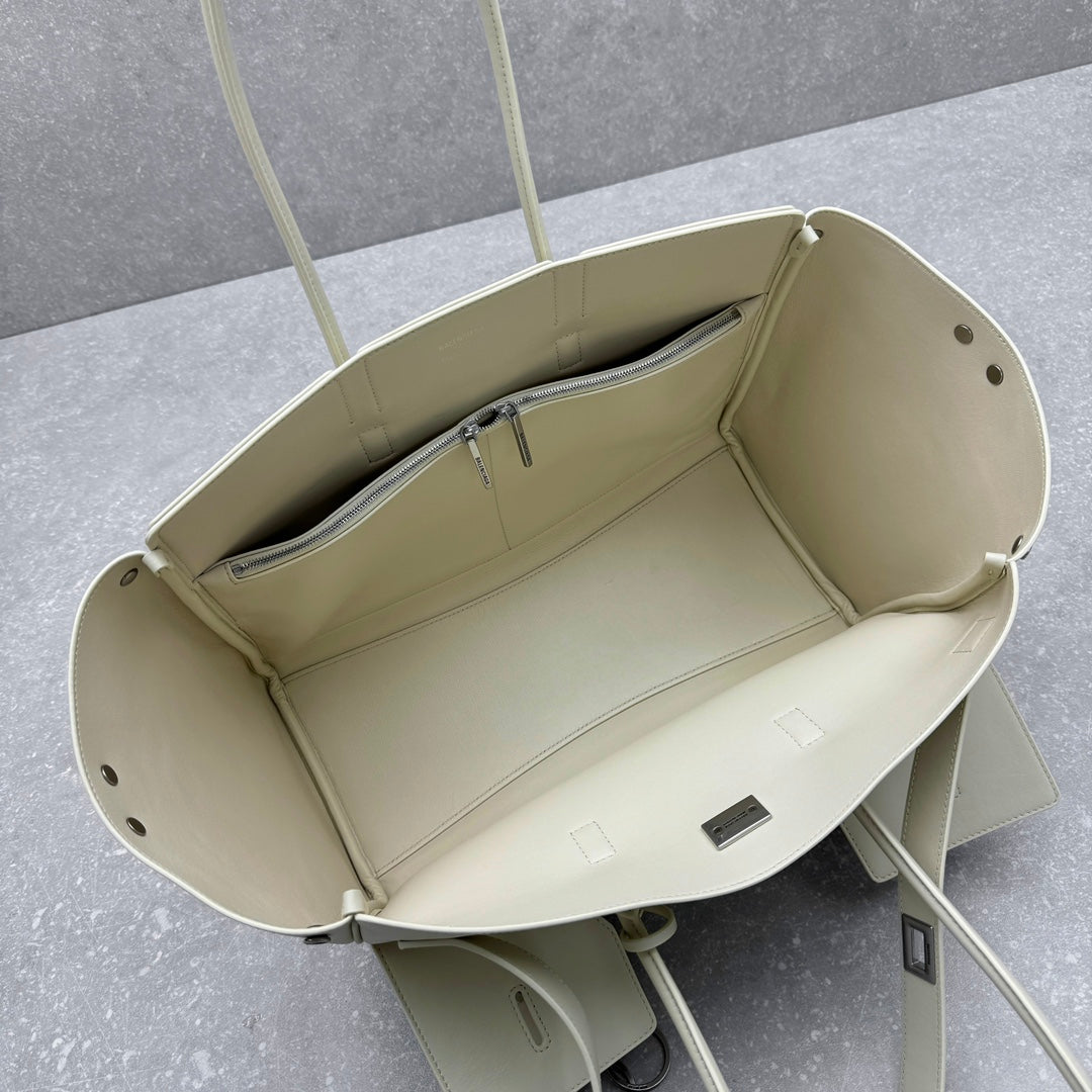 Balenciaga Bel Air Leather Tote Bag - Medium Silver White | 30x29x16cm Carry-All Designer Handbag