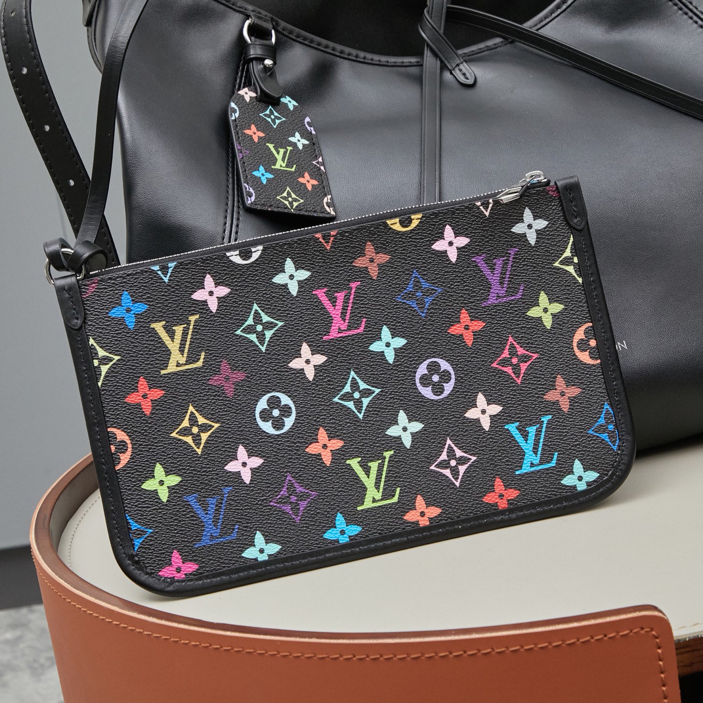 ✨ Murakami's Tri-Color Artistry: Featuring a classic black base with Murakami's iconic tri-color floral motifs, blending avant-garde art with modern style.