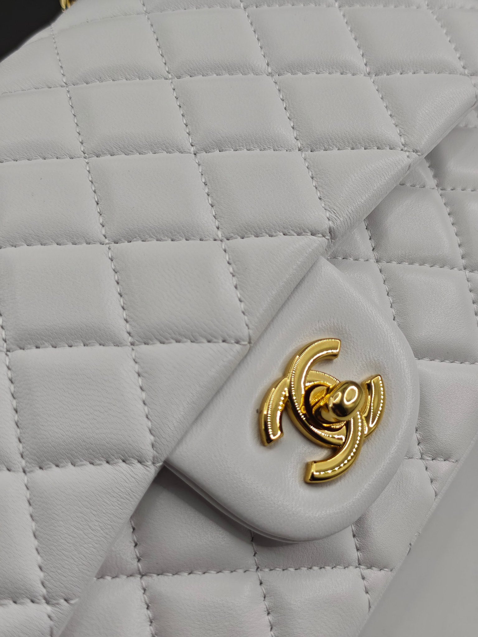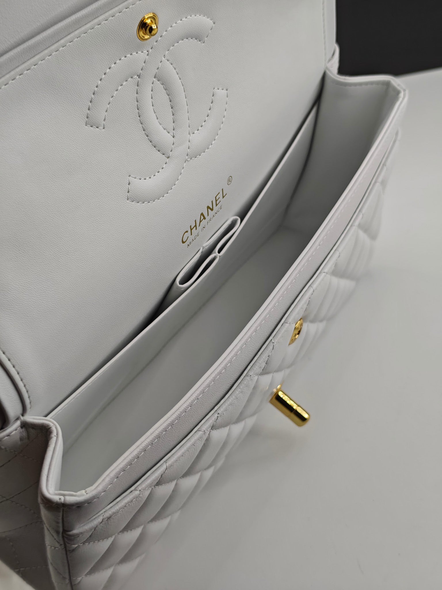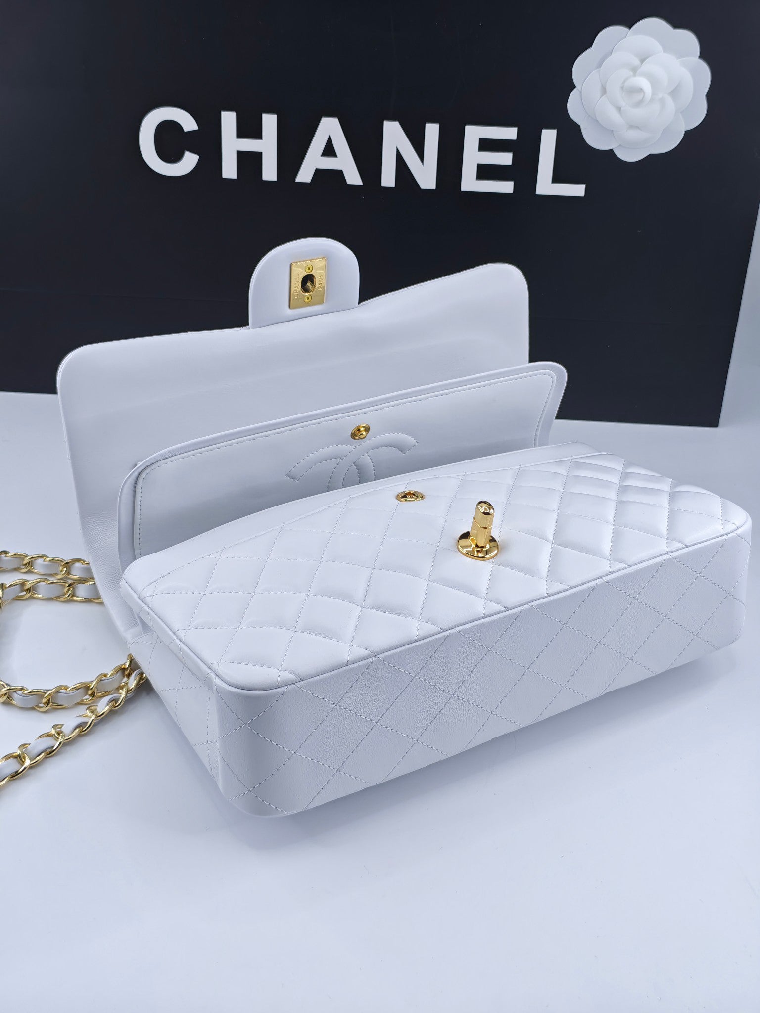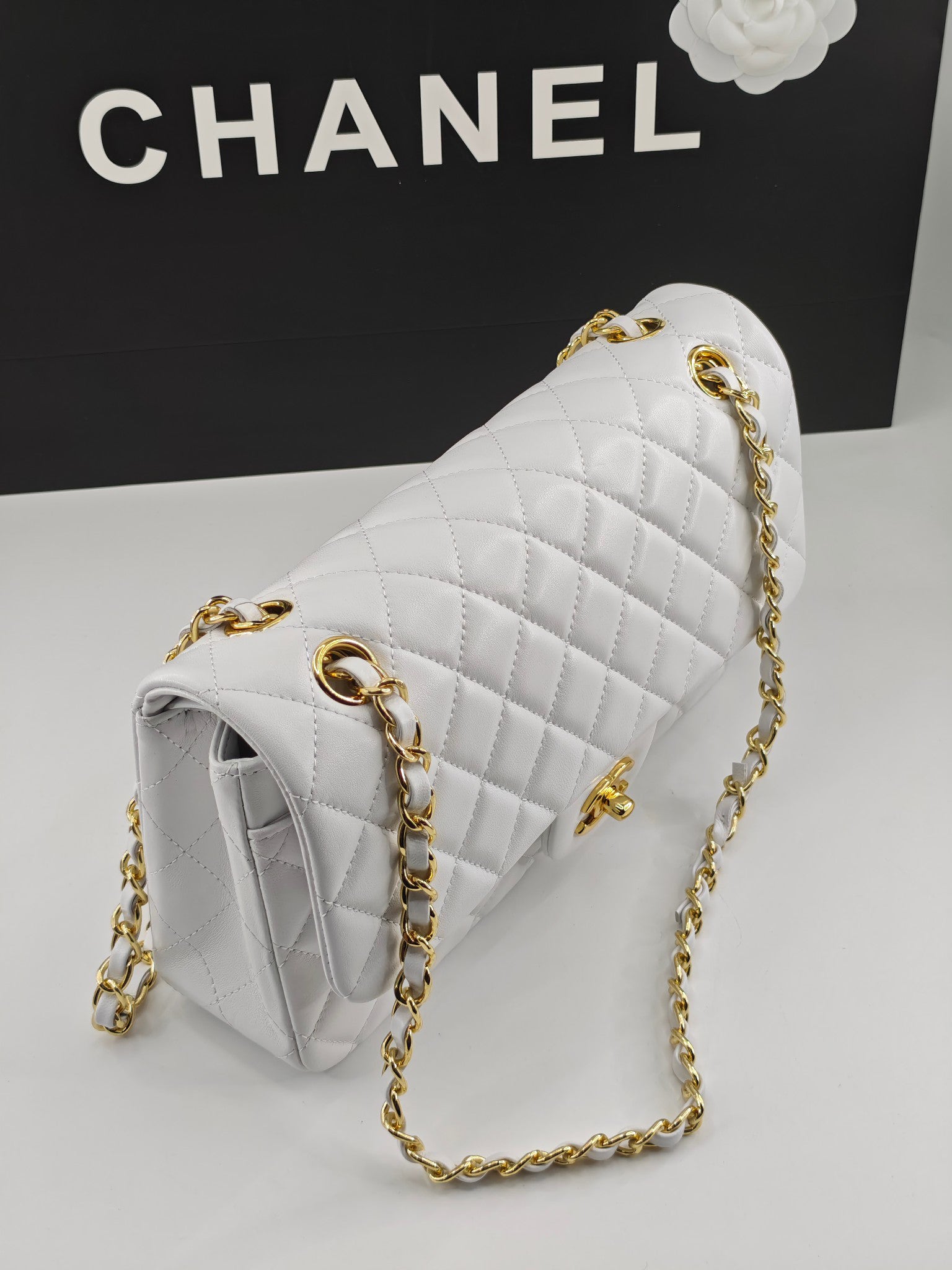 Chanel Classic CF1112 Handbag Genuine Imported Lambskin with Chip & Stamp 24K Gold Plated Hardware Anti-Fade Custom Luxury White Gold Buckle