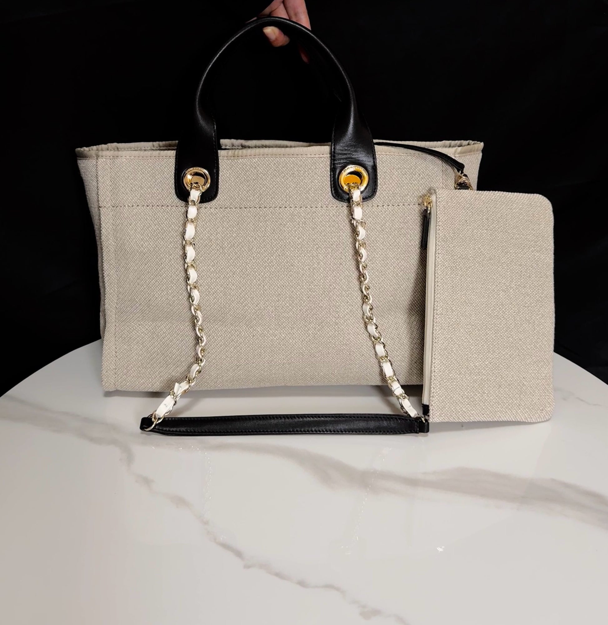 Water-Resistant Canvas Tote | CHANE2 Spring-Summer 33cm Beach Shopper Bag with Adjustable Strap