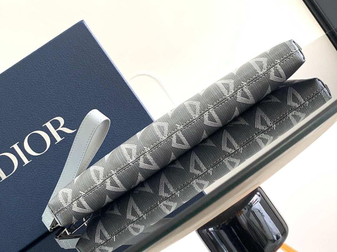 Dior A5 Grey Diamond Quilted Clutch | Marc Bohan Archival Design | Detachable Leather Strap | 30cm Calfskin Accessory