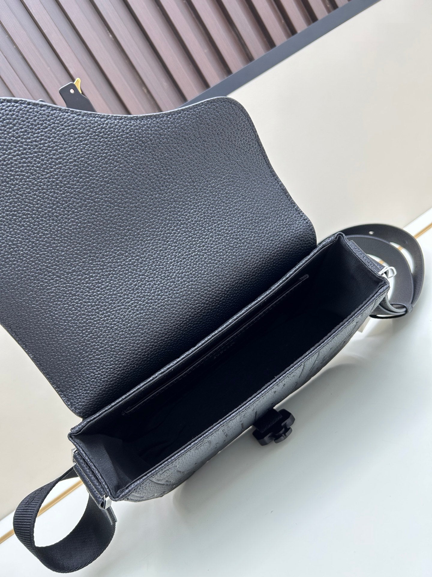 Title: DIOR GRAVITY Embossed Leather Messenger Bag | Detachable Strap Business Satchel