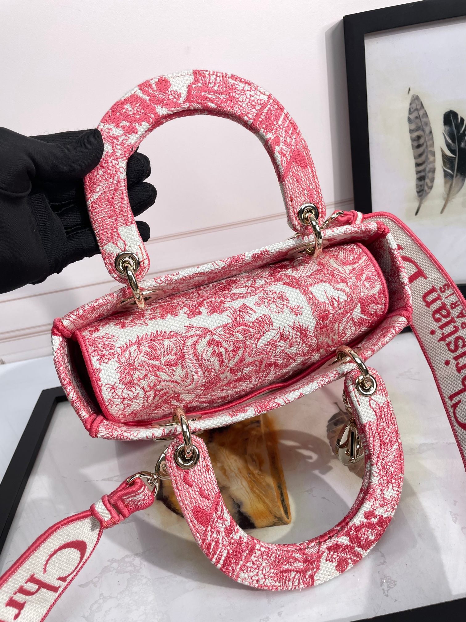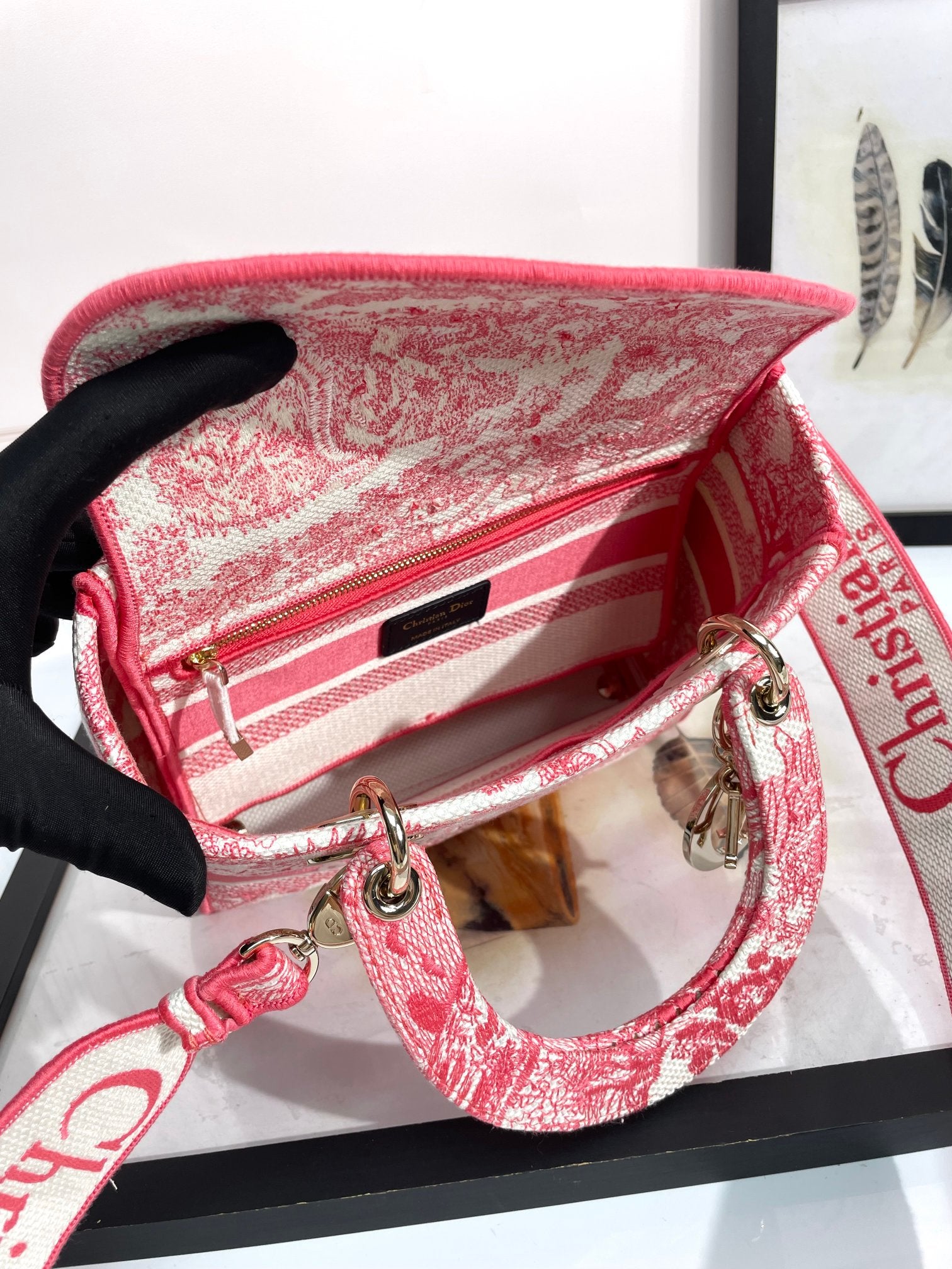 Dior Lady D-LITE Plum Tiger Embroidery Bag D6814 - Pietro Ruffo Sunset Collection with Magnetic Detachable Strap & D.I.O.R. Charms (Limited 24cm Cannage Bag)