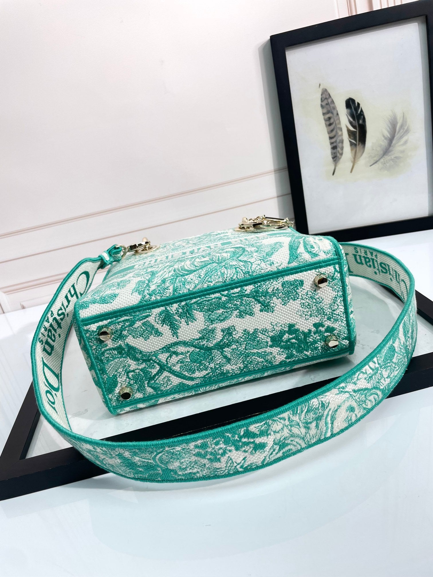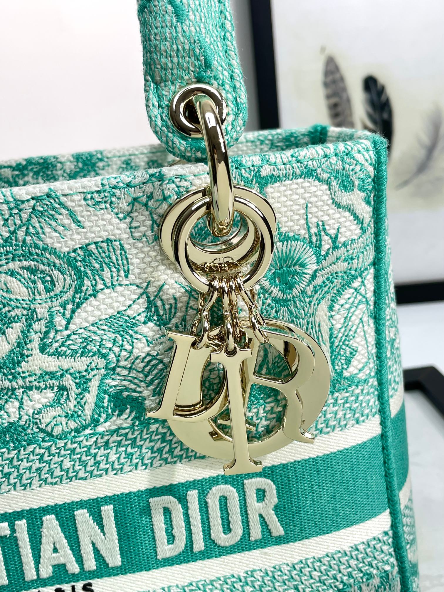 Pale-gold D.I.O.R. charm trio dancing at the flap