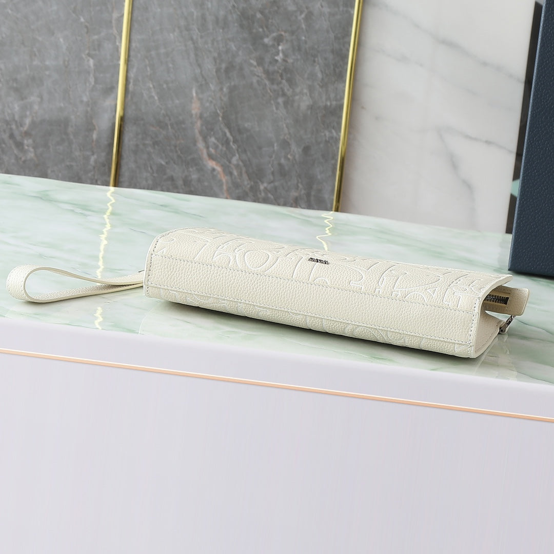 Dior A5 Triangle Clutch Bag|Beige Gravity Outline Embossed Leather|6 Card Slots & Detachable Wrist Strap