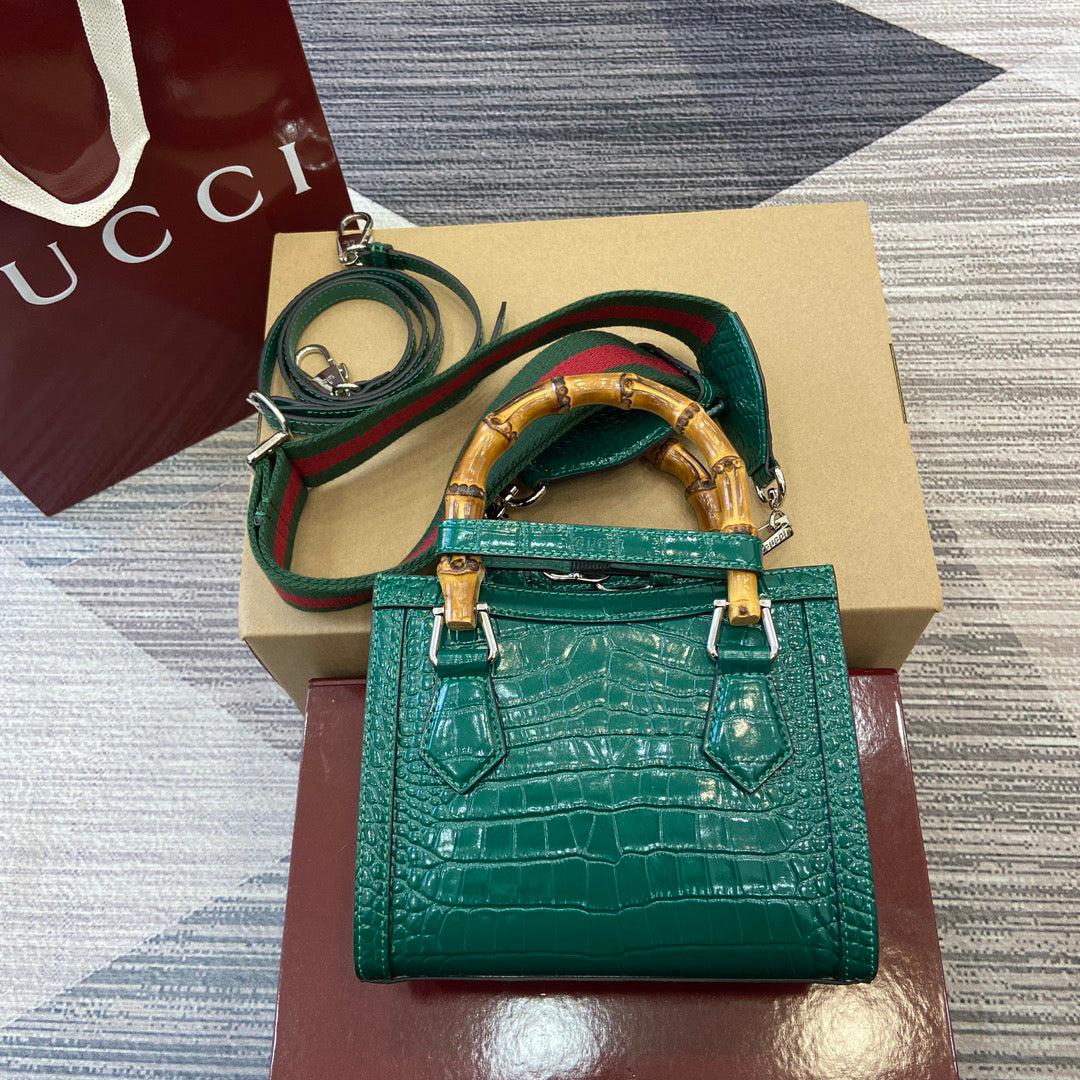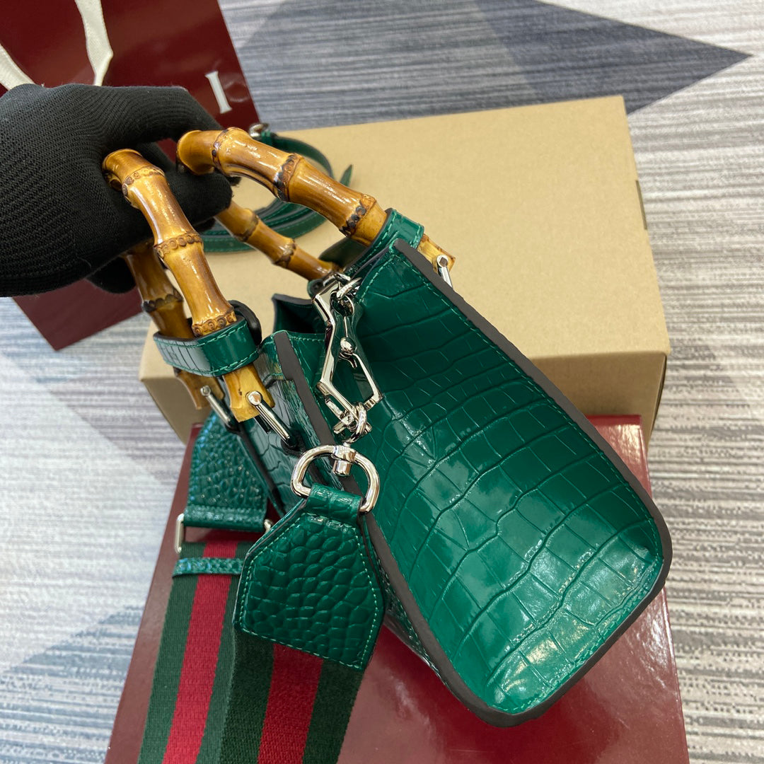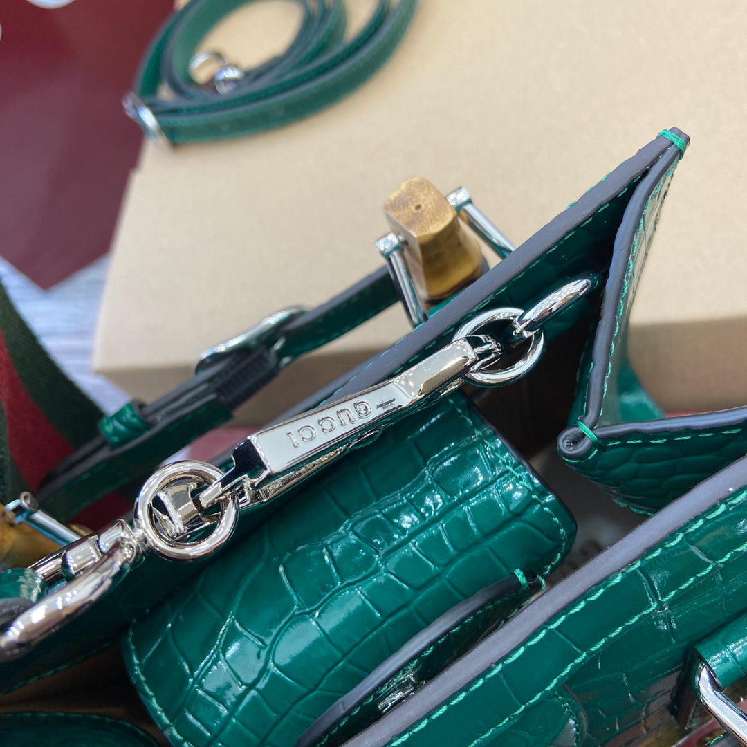 GUCCI 2023 Crocodile-Embossed Mini Backpack 20x16x10cm Fluorescent Buckle Bamboo Handle & Detachable Straps