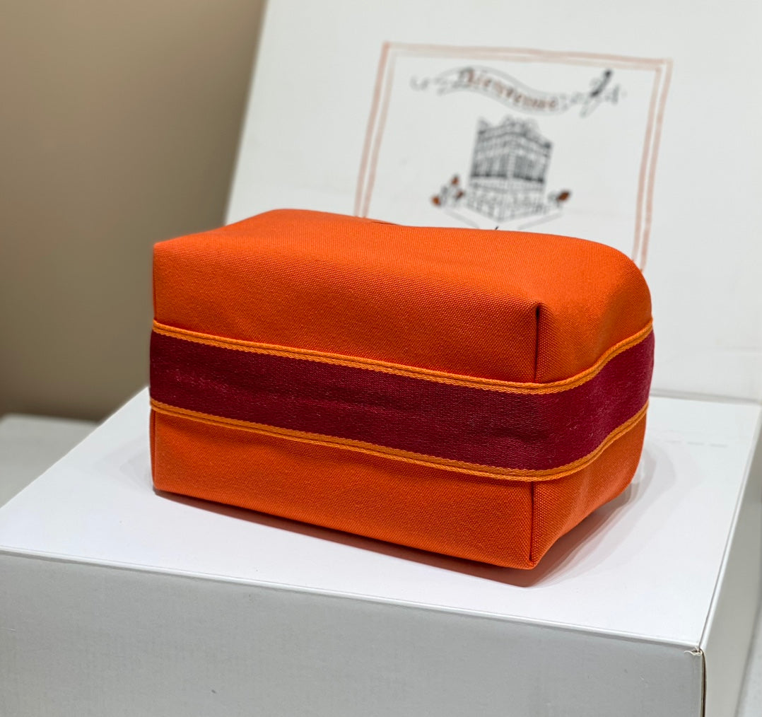 This 25cm canvas toiletry bag features the iconic Hermès orange hue, blending casual chic with luxury. Simply add a strap or handle to transform it into a stylish handbag or organizer!
