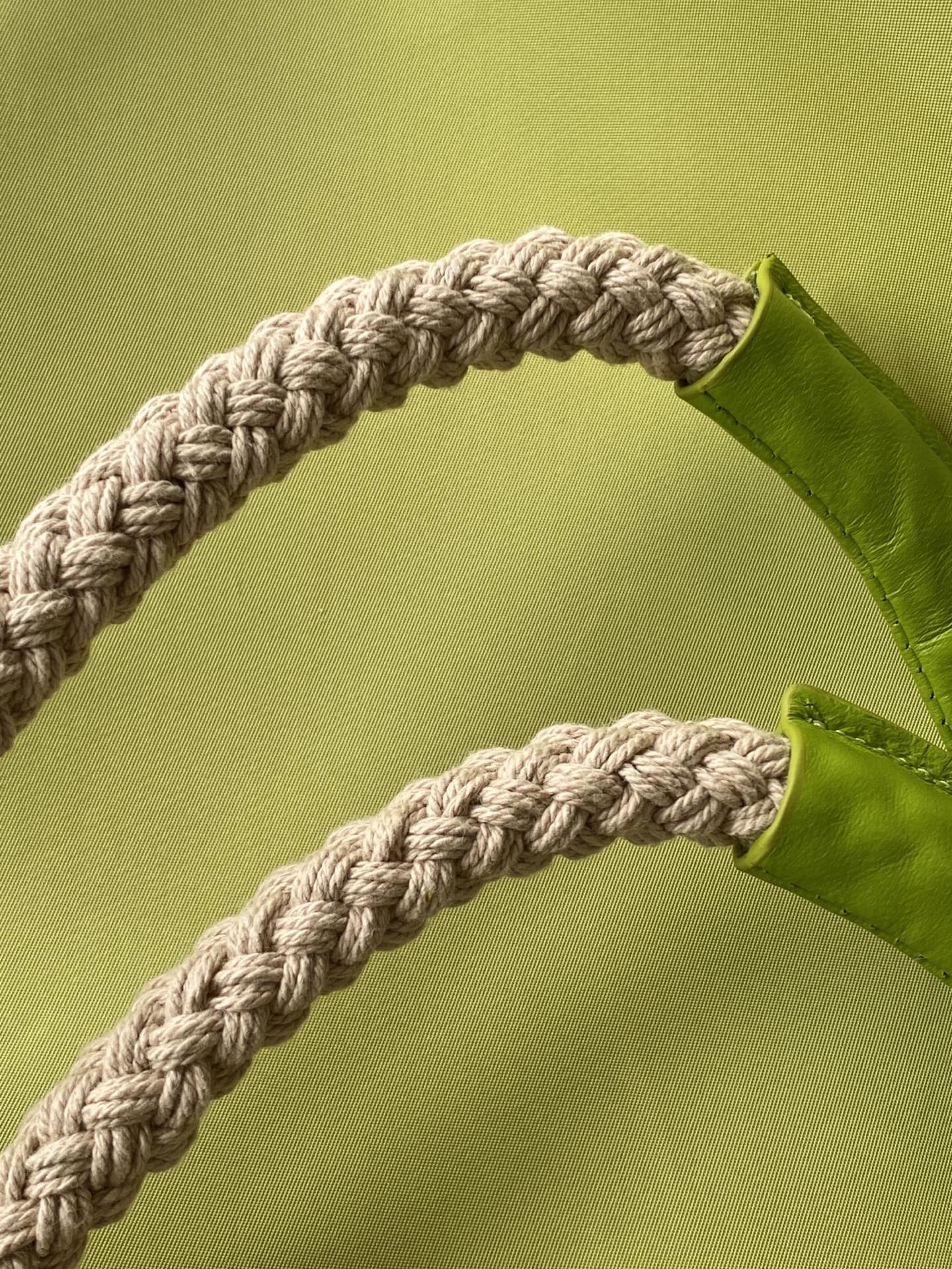 Crafted from 100% recycled nylon (equivalent to 12 discarded fishing nets per bag), with shimmering enamel triangle evoking sea reflections. Straight from 2025 fashion capitals!