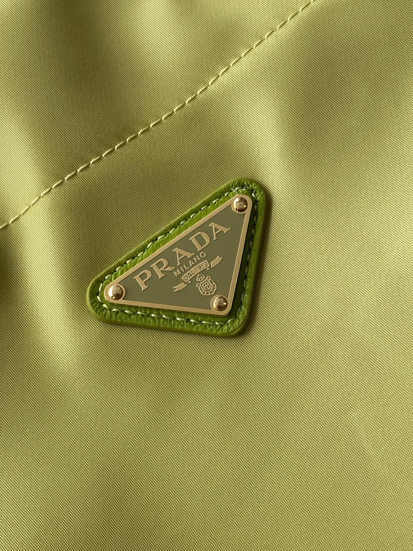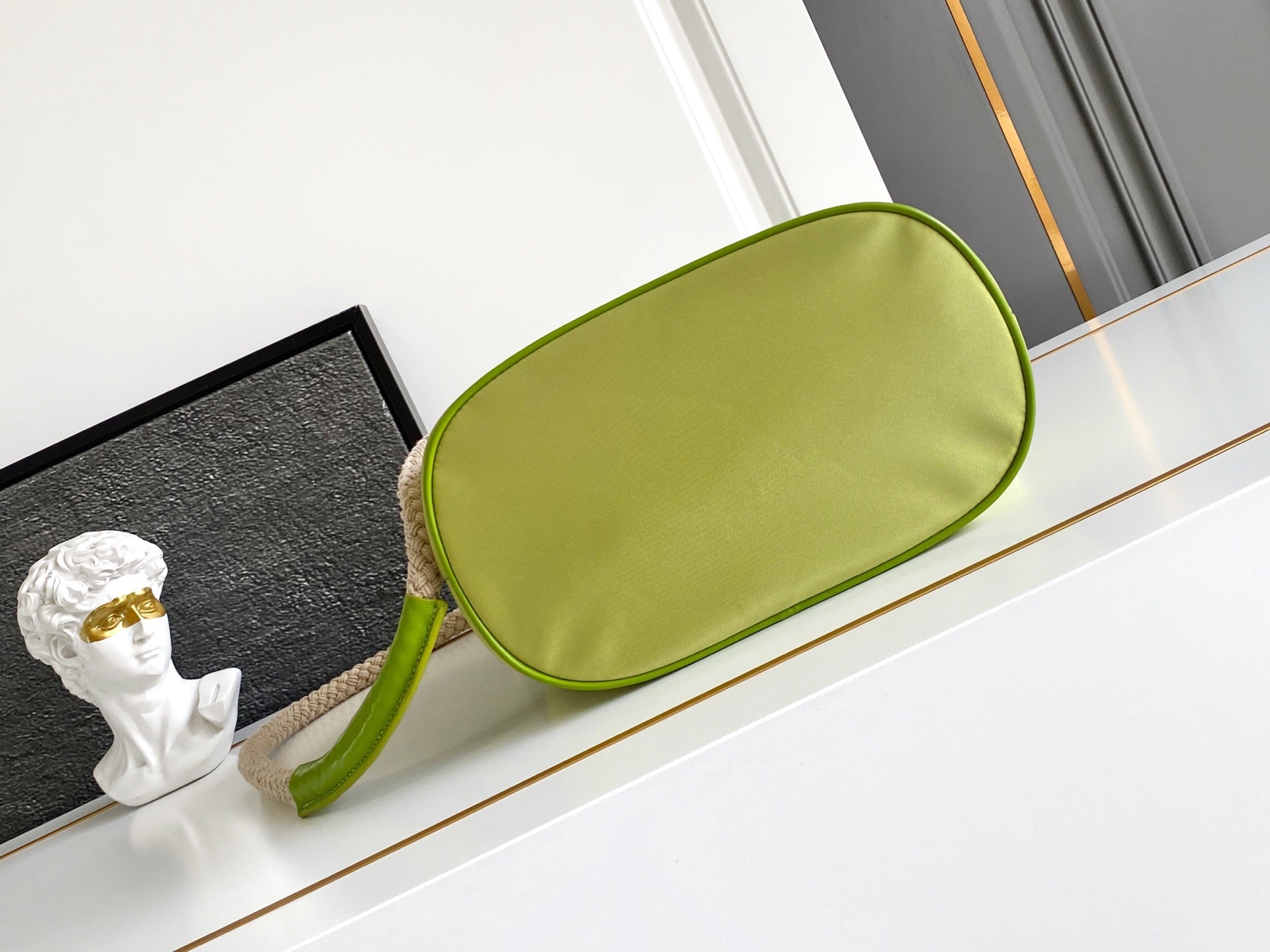 2025 Runway Recycled Nylon Bucket Bag 23.5x28x16.5cm - Slide Knot Handle & Enamel Triangle | Shoulder/Tote Convertible