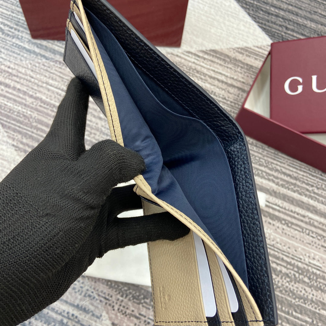 Gucci 2025 Early Spring Collection Deep Blue-Oat Calfskin Leather Bifold Wallet - Dual-Tone Motif, Refined Sophistication