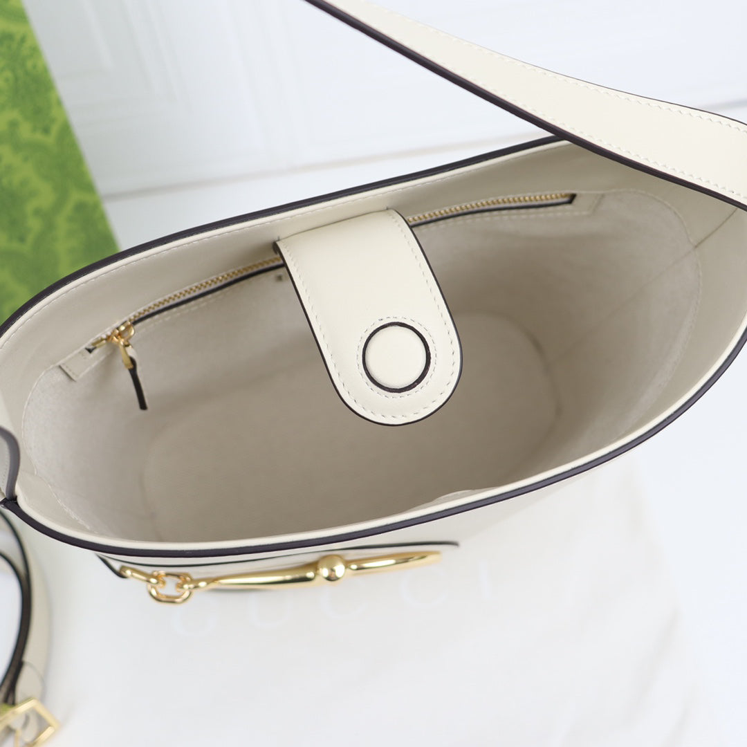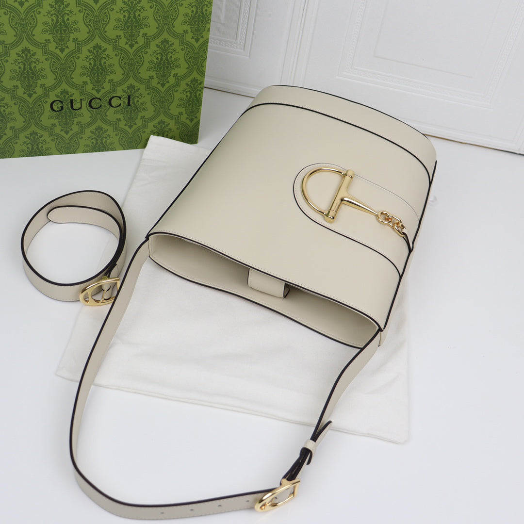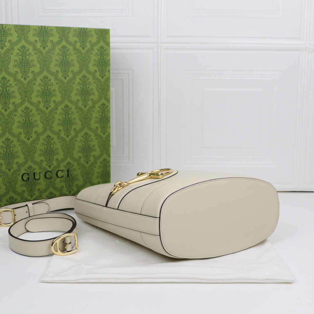 Gucci 73 Horsebit Bucket Bag SS2025 | Ivory White Oversized Tote with 3-Way Carry | 26x27.5x11.5cm