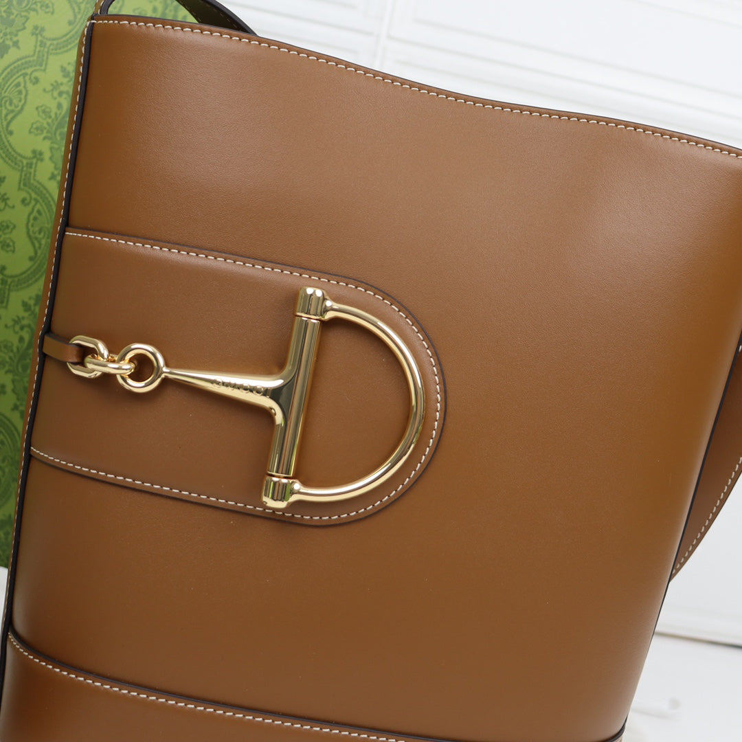 Gucci 73 Horsebit Bucket Bag SS2025 | Mocha Brown Oversized Tote with 3-Way Strap | 26x27.5x11.5cm