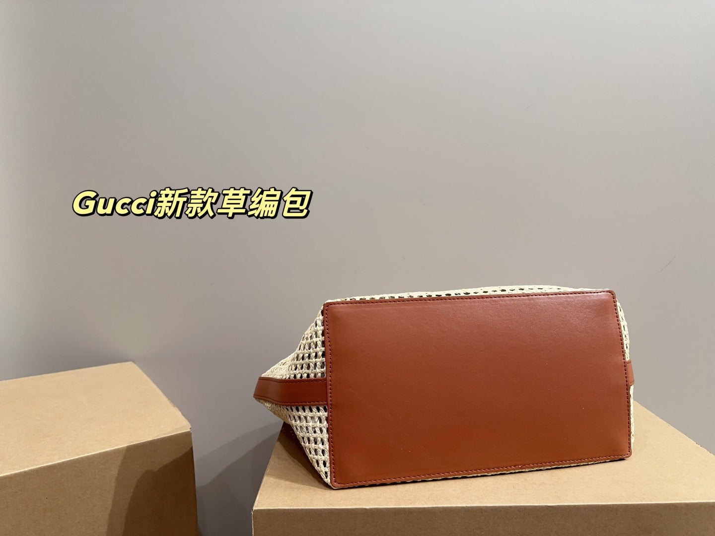 GUCCI Raffia Tote Bag with Gift Box 30x29cm 2024 Summer New Woven Beach Bag (Designer Vacation Essential)